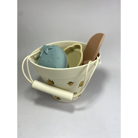 Silicone Fruit Beach Sand Toy Set for Toddlers Kids w/ Bucket, Shovel & Molds