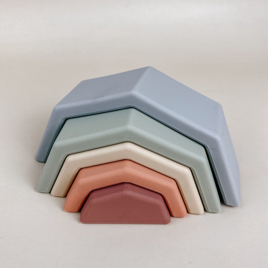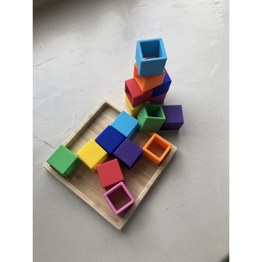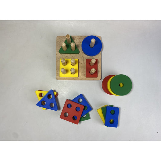 Silicone Geometric Shape Sorter w/ Wooden Base