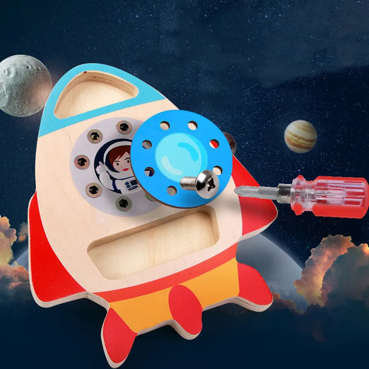 Wooden Rocket Busy Board for Toddlers