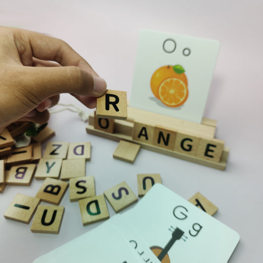 Wooden Spelling Tiles with Flash Cards Toy