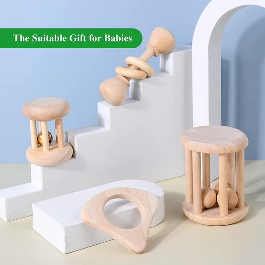 7 Pc Wooden Montessori Baby Teether and Rattle Set