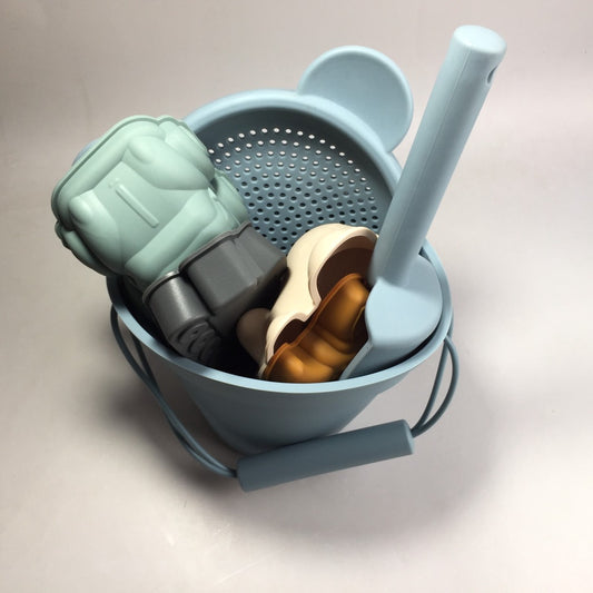 7pc Blue Silicone Beach Sand Toy Set Toddlers Kids w/ Bucket, Shovel & Sand Sifter & Mold