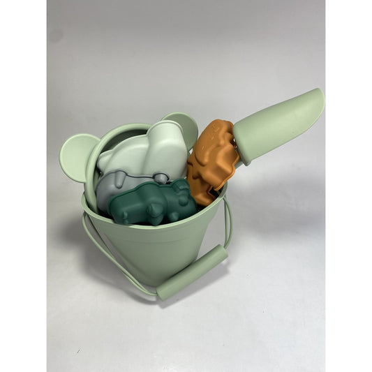 7pc Green Silicone Beach Sand Toy Set Kids w/ Bucket, Shovel & Sand Sifter & Molds