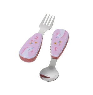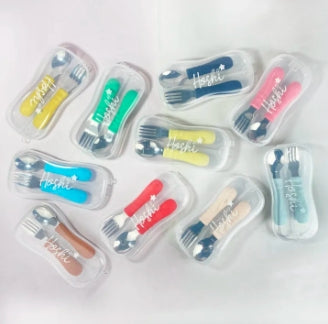 Cartoon Stainless Steel Toddler Training Spoon and Fork w/ Storage Case