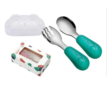 Happy Toddler Training Stainless Steel Spoon and Fork with Case