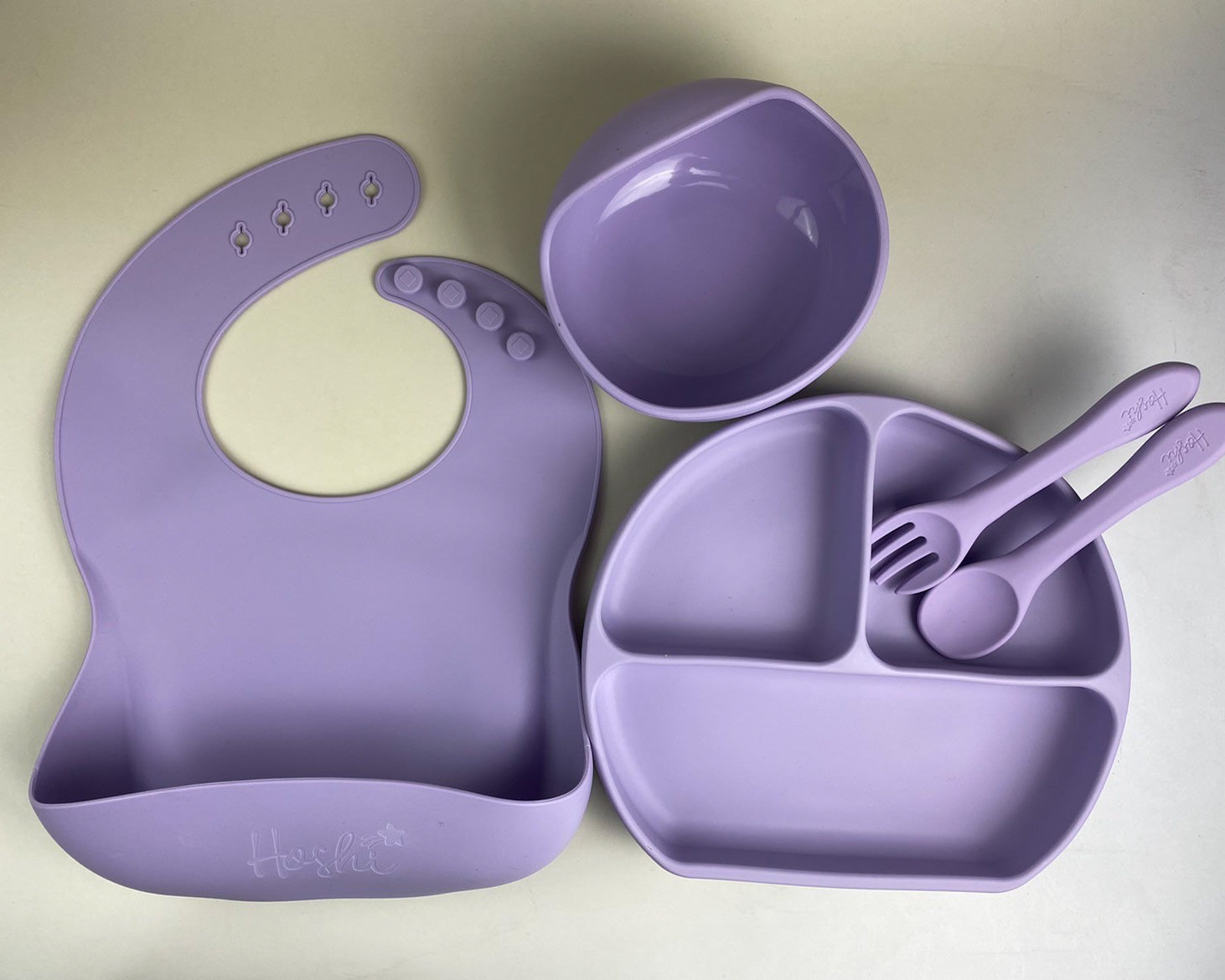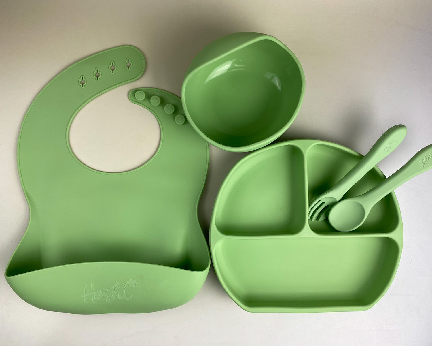 Silicone Suction Plate, Silicone Suction Bowl, Silicone Bib, Feeding Spoon, Feeding Fork,