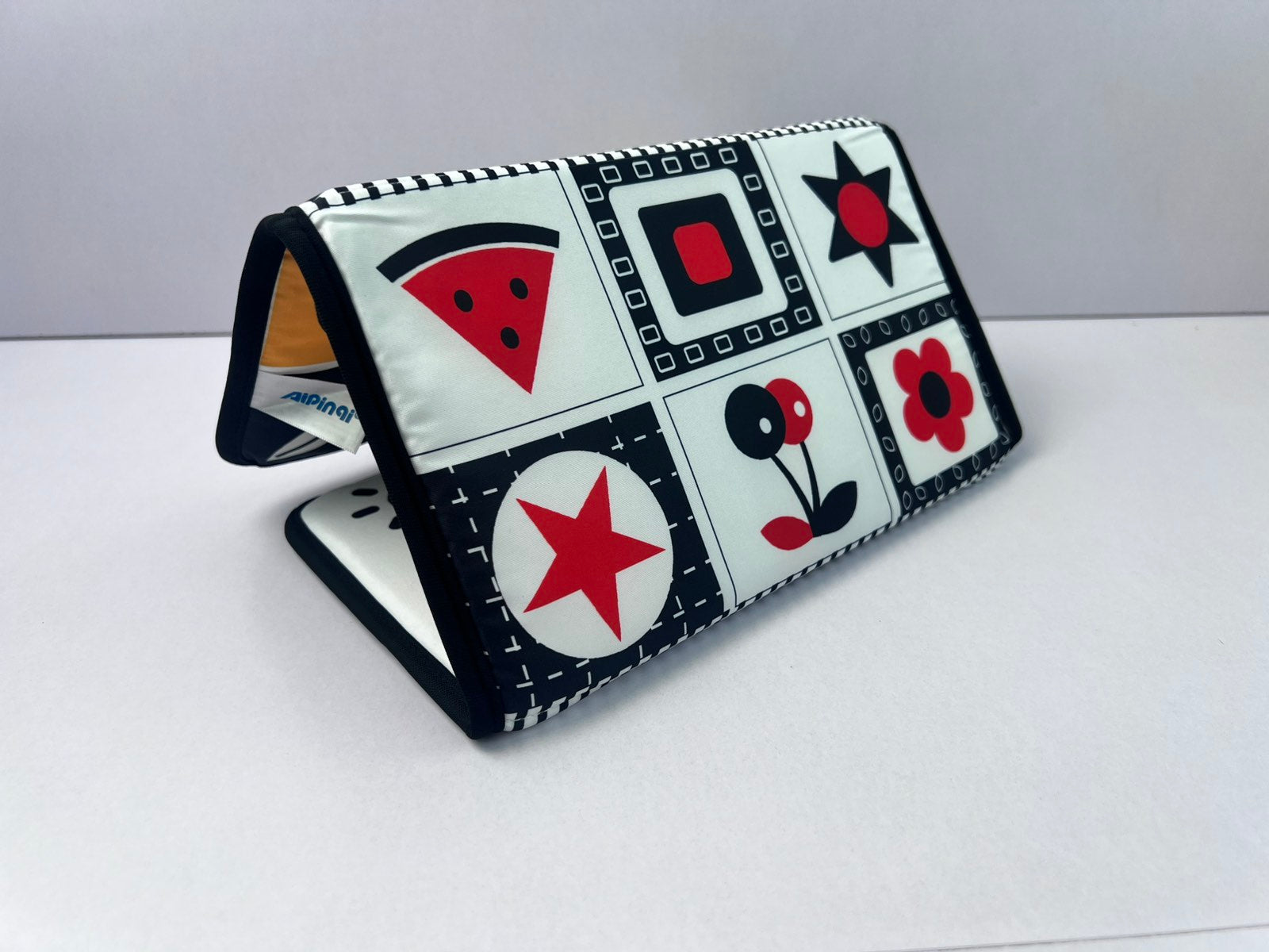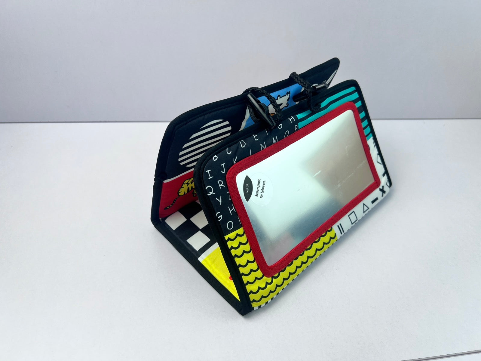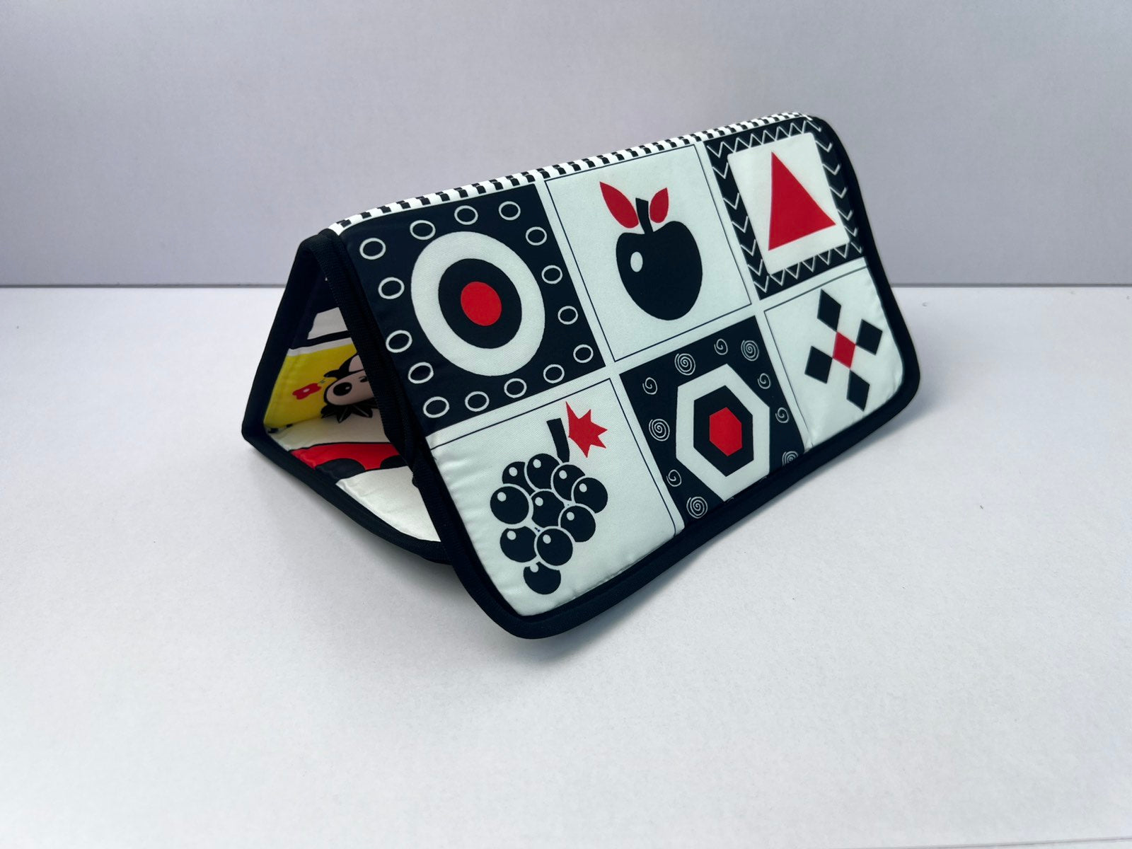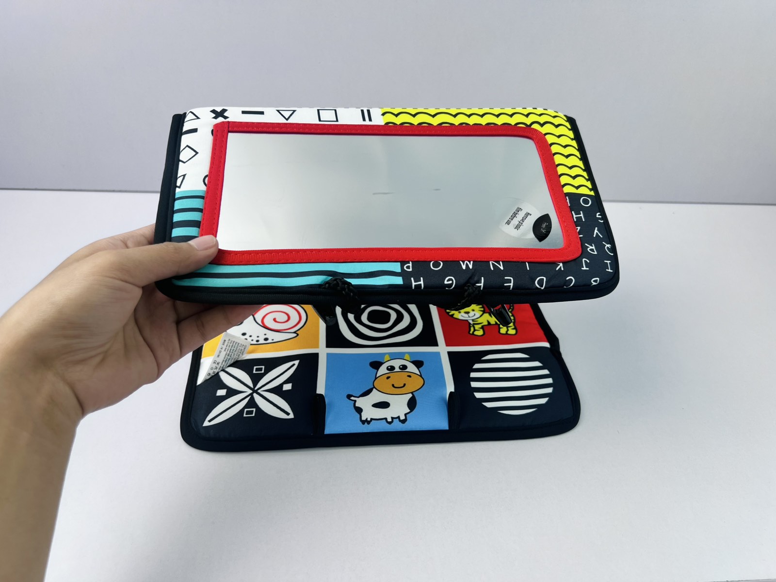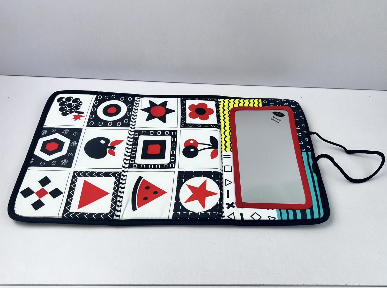 High Contrast Mirror Tummy Time Toy is perfect for newborns and infants (0 months+). This 2-in-1 toy works as a floor or crib mirror, encouraging babies to explore their reflection and different textures. It features bold black and white patterns for sensory stimulation, is lightweight, foldable, and easy to carry, with a safe large mirror and secure buckle connection.