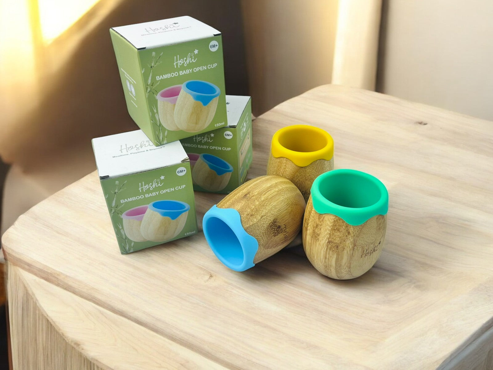 Hoshi Baby Natural Bamboo Open Cup with Silicone Lining, BPA Free, Non-Toxic, Infant Toddler 6Mos+