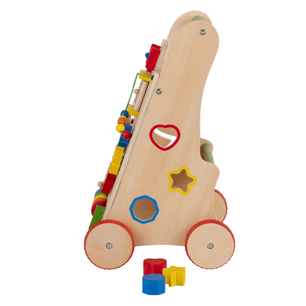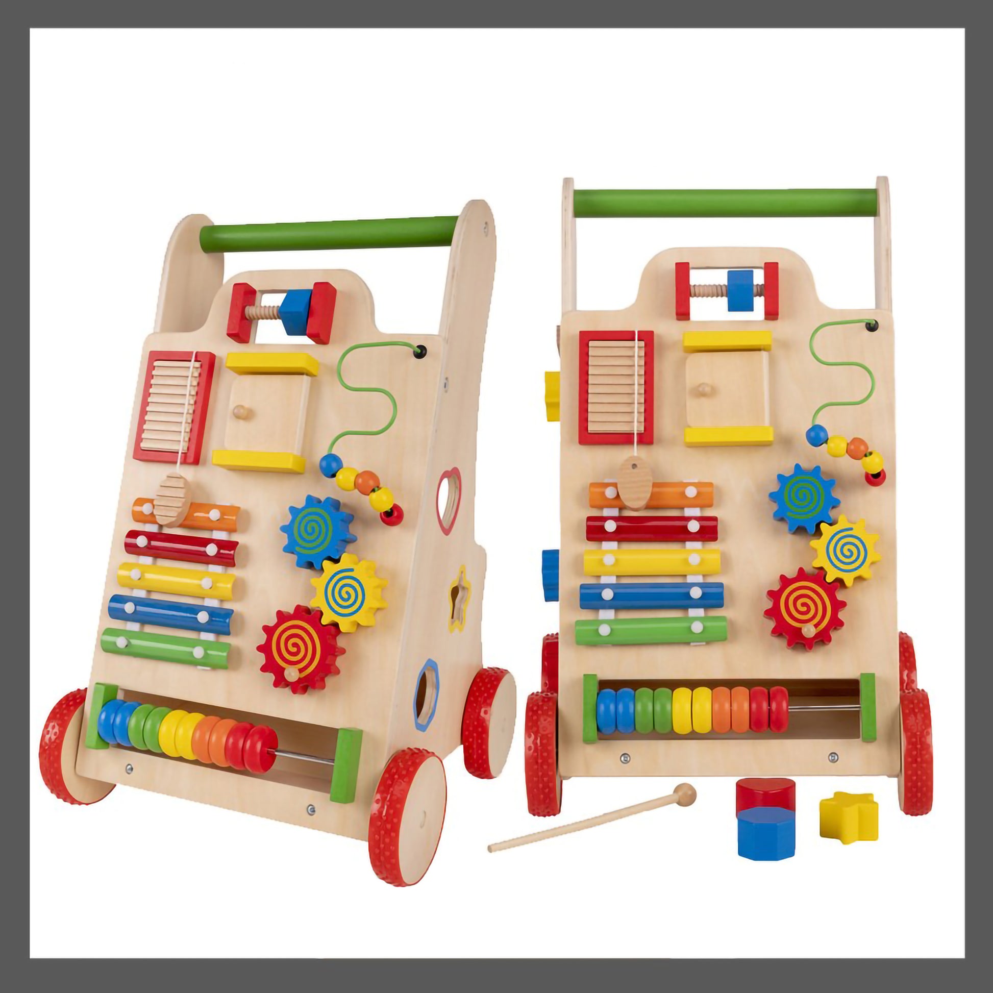 Interactive wooden walker for children is a perfect toy for the 1st birthday.
