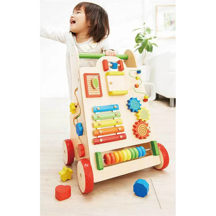 Hoshi Baby Wooden Montessori Interactive Baby Push Walker, Montessori Wooden Educational Toy 12M+